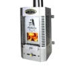 The Newport Solid Fuel Heater is a small stainless steel solid fuel heater designed for casual use. This heater burns one to two 1” thick wood or presto log, a handful of charcoal briquettes or coal. Removable ash drawer and damper control.